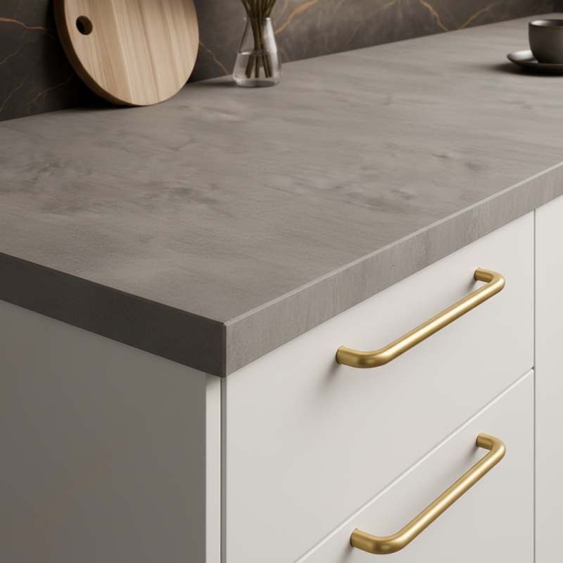 Die Arbeitsplatte EGGER Chromix Silber (F638 ST10) bietet ein modernes, industrielles Aussehen mit einem dezenten Metalleffekt, der sowohl minimalistische als auch luxuriöse Interieurs perfekt ergänzt. Sie ist die ideale Wahl für alle, die eine Kombination aus rohem Design, Eleganz und hoher Funktionalität suchen.