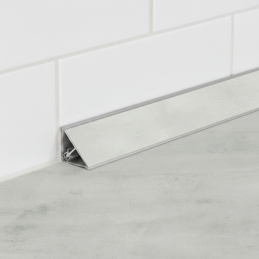 Sie besteht aus zwei Teilen – der untere Teil wird angeschraubt oder geklebt auf die Arbeitsplatte und der obere wird anschließend eingeklickt in den unteren Teil. So entsteht ein fester, präziser und harmonischer Abschluss im gleichen Dekor wie die Arbeitsplatte.