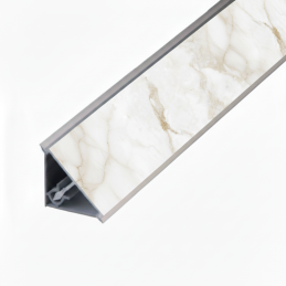 Die luxuriöse und moderne Abschlussleiste KRONOSPAN im Dekor Calacatta Ambrosio (K699 PN) ist für den professionellen und präzisen Abschluss von Arbeitsplatten bestimmt. Die Leiste dichtet die Verbindung zwischen Arbeitsplatte und Wand zuverlässig ab und verhindert so wirksam das Eindringen von Wasser und Schmutz. Gleichzeitig verleiht sie der Küche ein elegantes, exklusives Aussehen von weißem Marmor mit markanter grau-brauner Maserung und feinem Perlglanzeffekt.