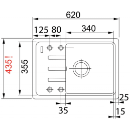 • Bohrung für Armatur: 4 vorgefertigte Durchbruchstellen