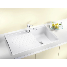 Blanco Zia 5 S ist ein praktisches Granitspülbecken mit einer größeren Spülschüssel, geeignet für Unterschränke mit einer Breite ab 50 cm. Es bietet die ideale Kombination aus Platz und modernem Design mit Abtropffläche.