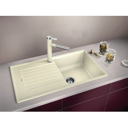 Blanco Zia 5 S ist ein praktisches Granitspülbecken mit einer größeren Spülschüssel, geeignet für Unterschränke mit einer Breite ab 50 cm. Es bietet die ideale Kombination aus Platz und modernem Design mit Abtropffläche.