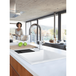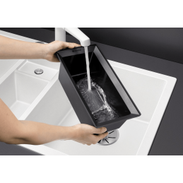 Dieses Modell ist die ideale Wahl für alle, die ein praktisches, elegantes und widerstandsfähiges Granitspülbecken suchen. Dank der intelligent gestalteten Aufbewahrungsschale, der geräumigen Abtropffläche und dem InFino®-Ablauf bringt es Komfort, Ästhetik und einfache Pflege in jede moderne Küche.
