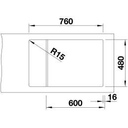 • Gesamtmaß der Spüle: 780 × 500 mm – geeignet für Unterschränke mit einer Breite von mind. 600 mm.