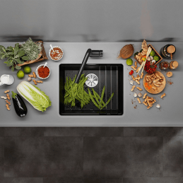 • Geräumige Wanne: Maße 500 × 400 mm, Tiefe bis zu 200 mm – ideal für alltägliches Geschirr und übergroße Küchenutensilien.