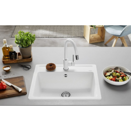 Blanco Legra 6 ist eine komfortable granit Einzelspüle, die großzügigen Platz für die Küchenarmatur und weiteres funktionales Zubehör bietet. Dank ihres klaren Designs und der breiten Auswahl an Farbvarianten passt sie sich leicht sowohl modernen als auch zeitlosen Küchen an. Die Spüle ist für die Arbeitsplattenmontage vorgesehen und eignet sich für Unterschränke mit einer Breite von 60 cm.