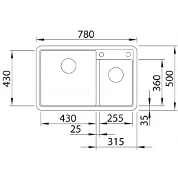 Außenmaße des Spülbeckens: 780 × 500 mm