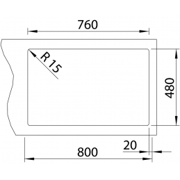 Ausschnitt für die Arbeitsplatte: 760 × 480 mm, R15