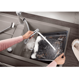 Dieses Modell ist ideal für diejenigen, die eine geräumige, widerstandsfähige und praktische Granitspüle mit großer Spüle und funktionaler Ablagefläche suchen. Blanco Metra XL 6 S bietet Komfort auch ohne Geschirrspüler und die bewährte Qualität der Marke BLANCO – eine zuverlässige Lösung für moderne Haushalte.