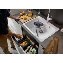 Blanco Naya 6 ist ein moderner Granit-Küchenspüle, der durch klare Linien und eine harmonische Form besticht. Er ist so konzipiert, dass er maximalen Komfort bei der täglichen Küchenarbeit bietet und sich gleichzeitig perfekt in ein modernes Interieur integriert.