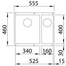 Das kleinere Becken ist ideal zum Abspülen von Obst und Gemüse, zum Abgießen von Nudeln oder für den separaten Umgang mit Geschirr. Die Gesamtmaße des Spülbeckens betragen 555 × 460 mm.