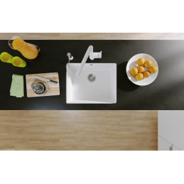 Dank der Unterbaulösung verschmilzt das Spülbecken perfekt mit der Arbeitsplatte und schafft eine moderne, fugenlose Optik. Es lässt sich ideal kombinieren mit Arbeitsplatten aus: