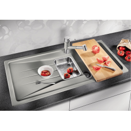 Das Hauptbecken mit einer Tiefe von 190 mm bietet ausreichend Platz für komfortables Geschirrspülen, während das kleinere Zusatzbecken ideal zum Abspülen von Obst und Gemüse oder zum Abgießen von Flüssigkeiten ist, wenn der Hauptbereich belegt ist.