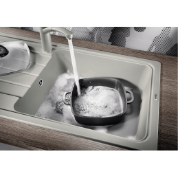 Dank der Beckenbreite von bis zu 480 mm können Sie darin problemlos Backbleche, große Töpfe oder Pfannen spülen, während die praktische Abtropffläche ausreichend Platz zum Trocknen des Geschirrs bietet.