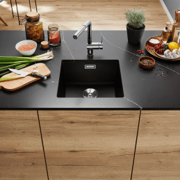 Blanco Subline 400-U repräsentiert den Höhepunkt modernen Designs in der Kategorie der Unterbauspülen. Diese elegante Granitspüle mit den Maßen 430 × 460 mm ist für den Einbau in einen Unterschrank mit einer Breite ab 50 cm vorgesehen und bietet die ideale Kombination aus Kompaktheit und Komfort.
