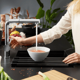 Ohne Bohrungen – die Armatur wird in die Arbeitsplatte montiert