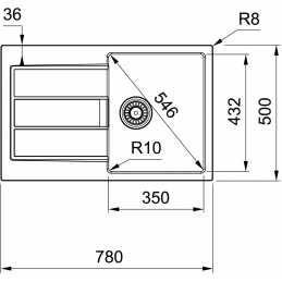 Außenmaß des Spülbeckens: 780 × 500 mm