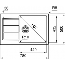 Außenmaß des Spülbeckens: 780 × 500 mm