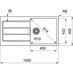 Außenmaß des Beckens: 1000 × 500 mm