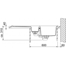 Minimale Unterschrankbreite: 600 mm