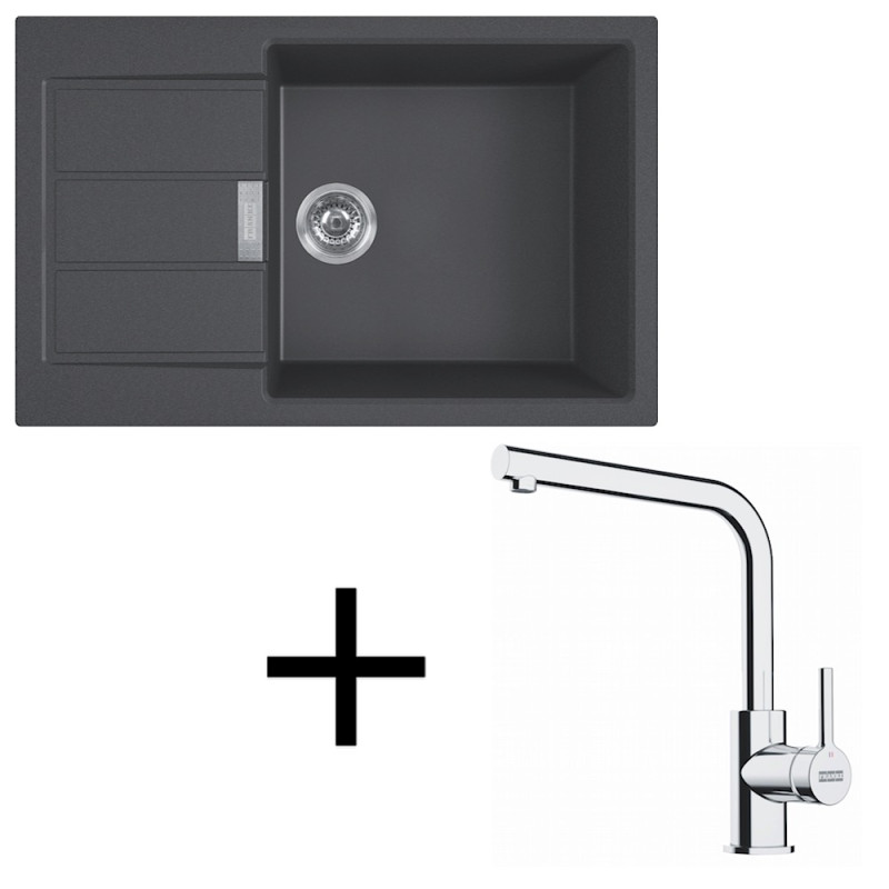 Set T116 Tectonit-Spüle Franke S2D 611-78 XL + Armatur FS 3230 / Schwarz