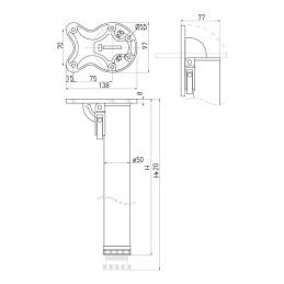 Obere Montageplattform mit den Maßen 138 × 97 mm mit Verriegelungsmechanismus
