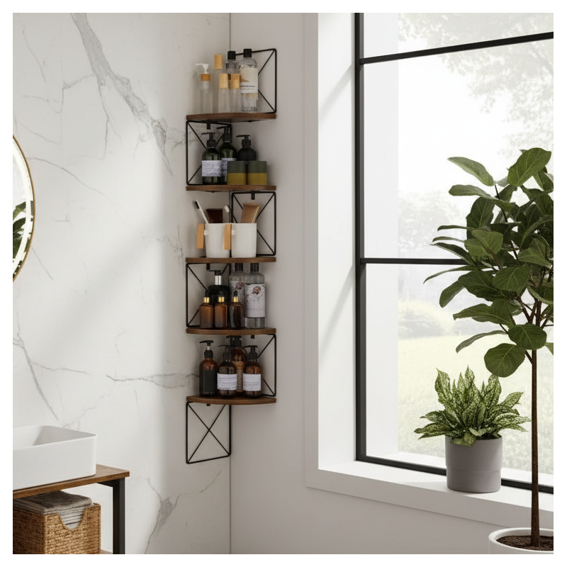 - Maximale Raumausnutzung: ideal, um ungenutzte Ecken zu nutzen, ohne Bodenfläche zu beanspruchen.