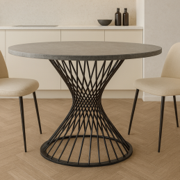 Das exklusive Tischgestell METRIX vereint künstlerisches Design mit perfekter technischer Präzision. Seine spiralförmige Konstruktion aus verflochtenen Stahlstäben erzeugt einen einzigartigen 3D-Effekt, der garantiert in jedem Interieur Aufmerksamkeit erregt. Dieses Designelement besticht nicht nur optisch, sondern auch durch seine Stabilität und Robustheit.