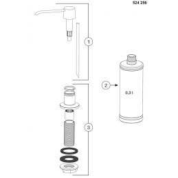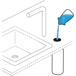 Unter der Arbeitsplatte befindet sich ein Kunststoffbehälter mit 300 ml Fassungsvermögen, der eine ausreichende Menge Seife aufbewahrt. Das Nachfüllen ist sehr einfach – einfach die obere Pumpe herausziehen und den Spender direkt von oben befüllen.
