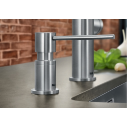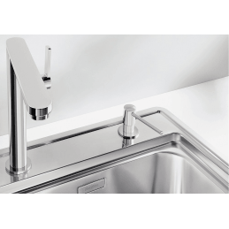 Blanco Torre ist ein eleganter eingebauter Seifenspender, der mehr Komfort und ein sauberes Erscheinungsbild in den Bereich um das Spülbecken bringt. Der moderne abgewinkelte Kopf mit verlängertem Auslauf ermöglicht eine präzise Dosierung direkt in das Becken, ohne unnötiges Tropfen auf die Arbeitsplatte.
