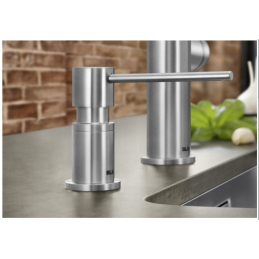 Blanco Torre ist ein eleganter Einbau-Seifenspender, der mehr Komfort und ein sauberes Erscheinungsbild in den Bereich rund um das Spülbecken bringt. Der moderne, abgewinkelte Kopf mit verlängertem Auslauf ermöglicht eine präzise Dosierung direkt in das Becken, ohne unnötiges Tropfen auf die Arbeitsplatte.