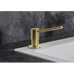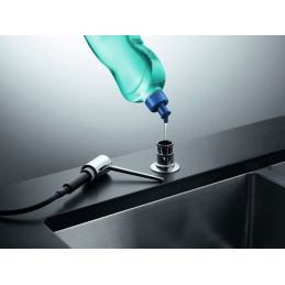 Unter der Arbeitsplatte befindet sich ein Behälter mit einem Fassungsvermögen von 300 ml, der ausreichend Platz für Reinigungsmittel bietet. Der Spender wird einfach von oben nachgefüllt, ohne dass der untere Behälter demontiert werden muss.
