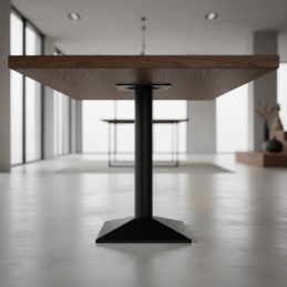 Stabiles zentrales Tischbein aus Metall für hohe Stabilität und Belastbarkeit, ideal für Ess-, Arbeits- oder Restauranttische. Dank seines Gewichts und seiner stabilen Konstruktion kann er auch größere Tischplatten zuverlässig tragen.