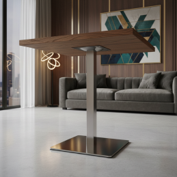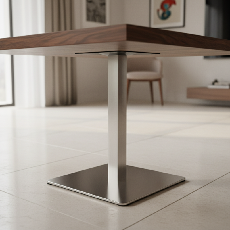 Das zentrale Tischgestell URBAN in elegantem Edelstahl-Design verleiht dem Tisch ein modernes und professionelles Aussehen. Dank der stabilen und massiven Konstruktion bietet es hervorragende Stabilität und ist sowohl für den Einsatz in Haushalten, Büros als auch in der Gastronomie geeignet.