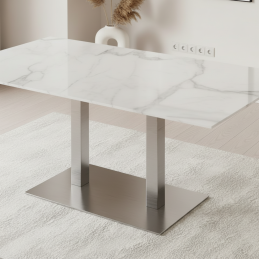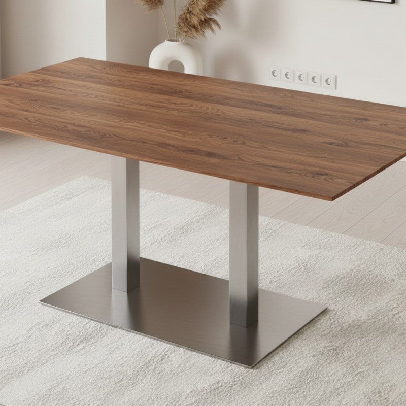 Massives zentrales Tischbein aus Metall, ideal für Ess- und Stehtische. Dank seiner robusten Bauweise und seines hohen Gewichts gewährleistet es eine hervorragende Stabilität und Tragfähigkeit auch für größere Tischplatten.