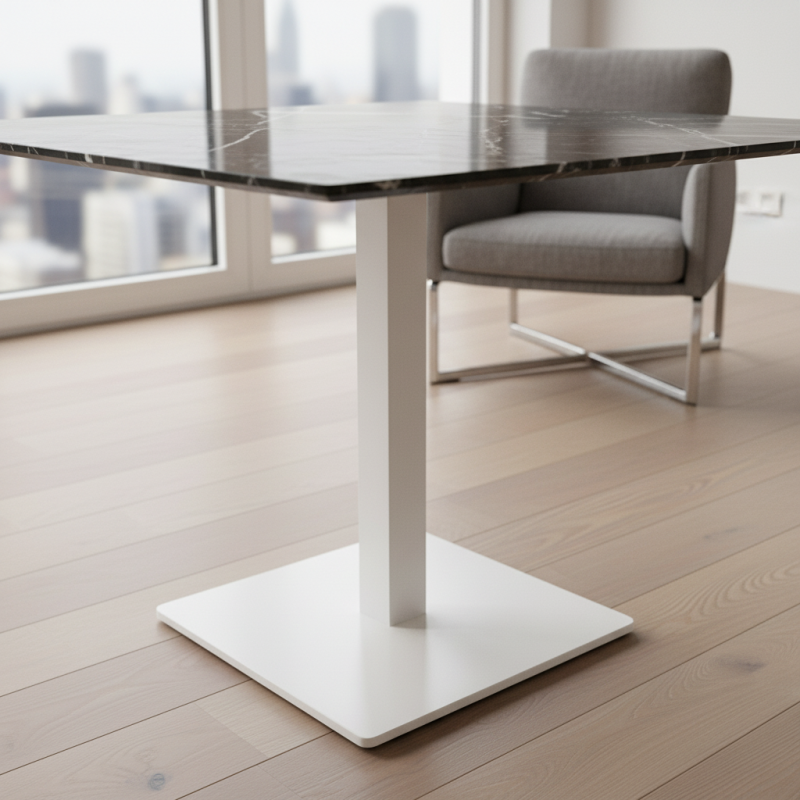 Das zentrale Tischgestell URBAN in elegantem weiß-mattem Design ist die ideale Wahl für moderne Innenräume, in denen Sie ein klares Design mit einer stabilen Konstruktion verbinden möchten. Dank der robusten Stahlbasis bietet es eine hohe Tragfähigkeit und Stabilität, sodass es sich für Haushalte, Büros und Gastronomiebetriebe eignet.