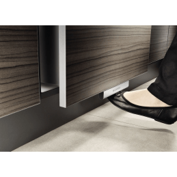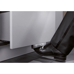 Blanco Movex ist eine praktische und hygienische Fußbedienung, bestimmt für Blanco Select Abfallsysteme und alle ausziehbaren Türen von Küchenschränken. Sie ermöglicht das bequeme Öffnen der Türen ohne Handbenutzung, was Sie besonders beim Kochen oder beim Umgang mit Abfall zu schätzen wissen.