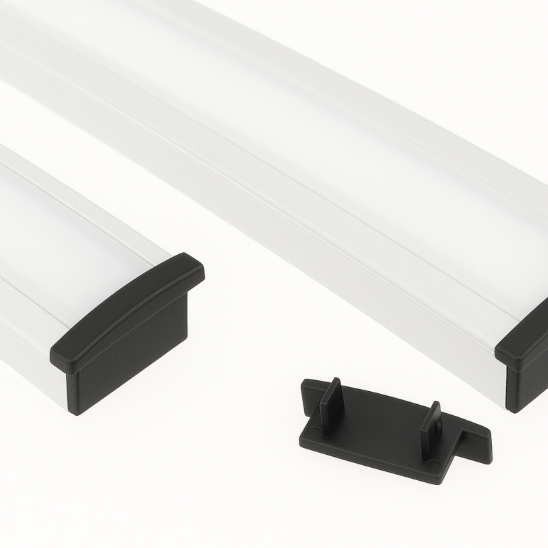 Geeignet zum Abschluss von LED-Profilen in der Innenraumbeleuchtung – zum Beispiel in Möbeln, Küchenzeilen, Vitrinen oder Dekorleisten.