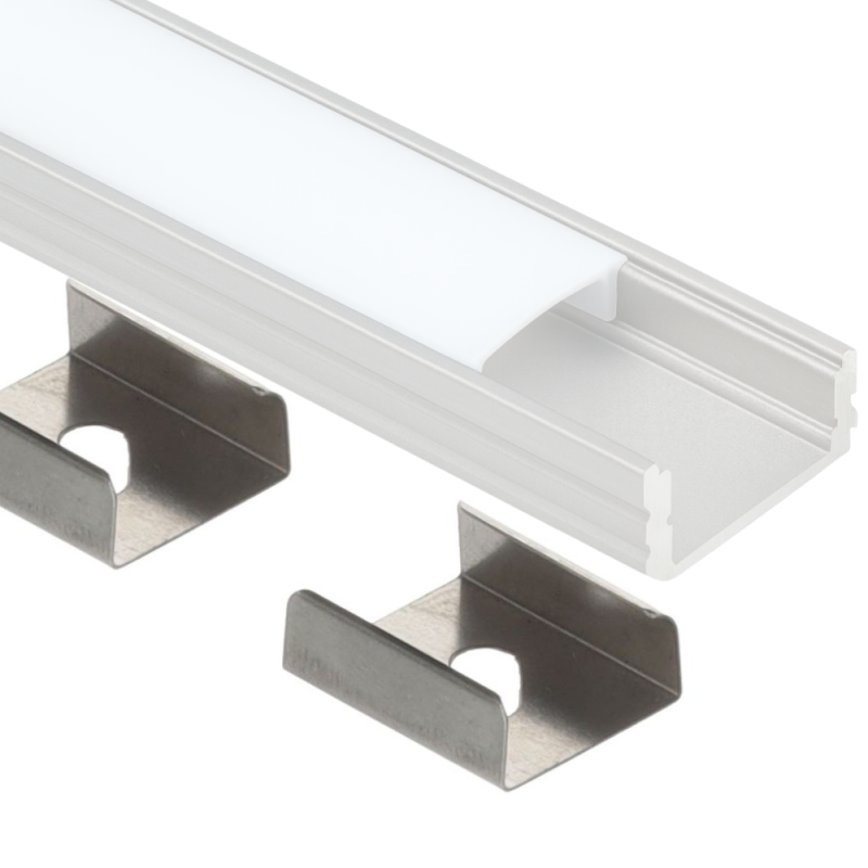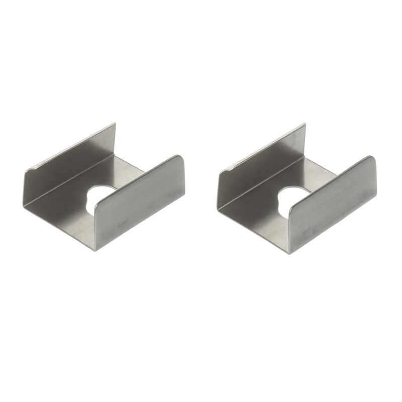 Praktische Edelstahlhalterung für das Aluminium-LED-Profil MAXX. Sie dient zur festen und ästhetischen Befestigung des Profils an der Unterseite eines Schranks, an der Wand oder einer anderen ebenen Fläche.
