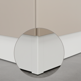 Der Verbinder ist geeignet für Kunststoff- und Holzsockel und dank des einfachen Klicksystems kann er werkzeuglos montiert werden.