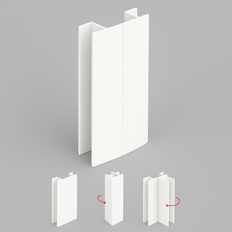 Dank ihrer flexiblen Konstruktion ermöglicht sie das Erstellen von Innen-, Außen- und atypischen Ecken ohne genaues Zuschneiden des Sockels.